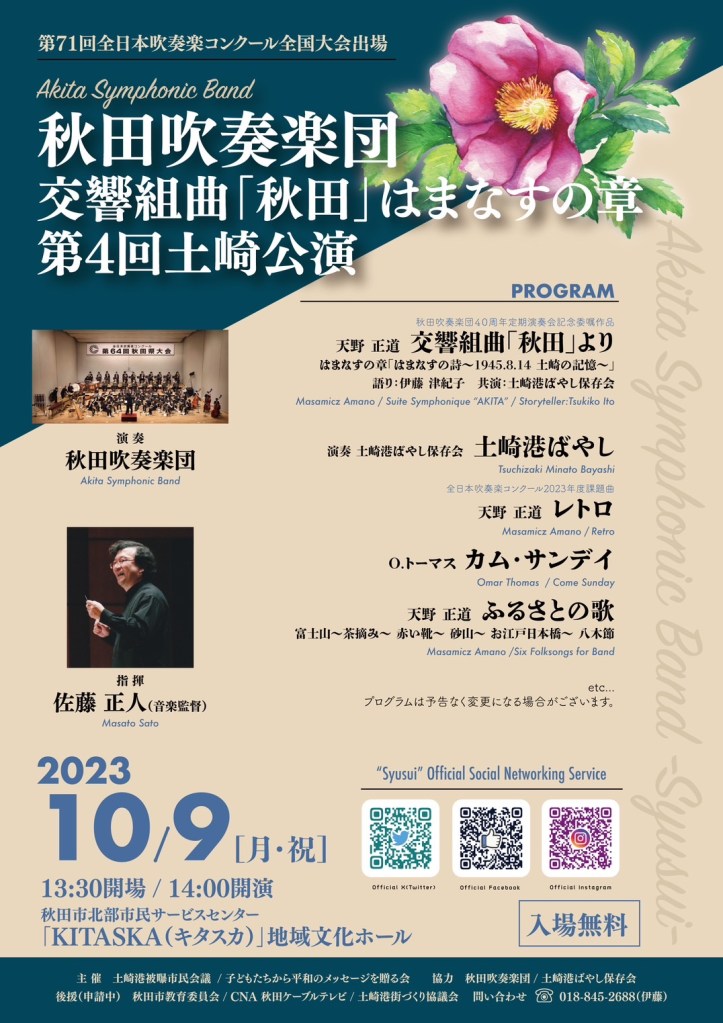 10/9(月祝)秋田吹奏楽団 交響組曲「秋田」はまなすの章 第4回土崎公演