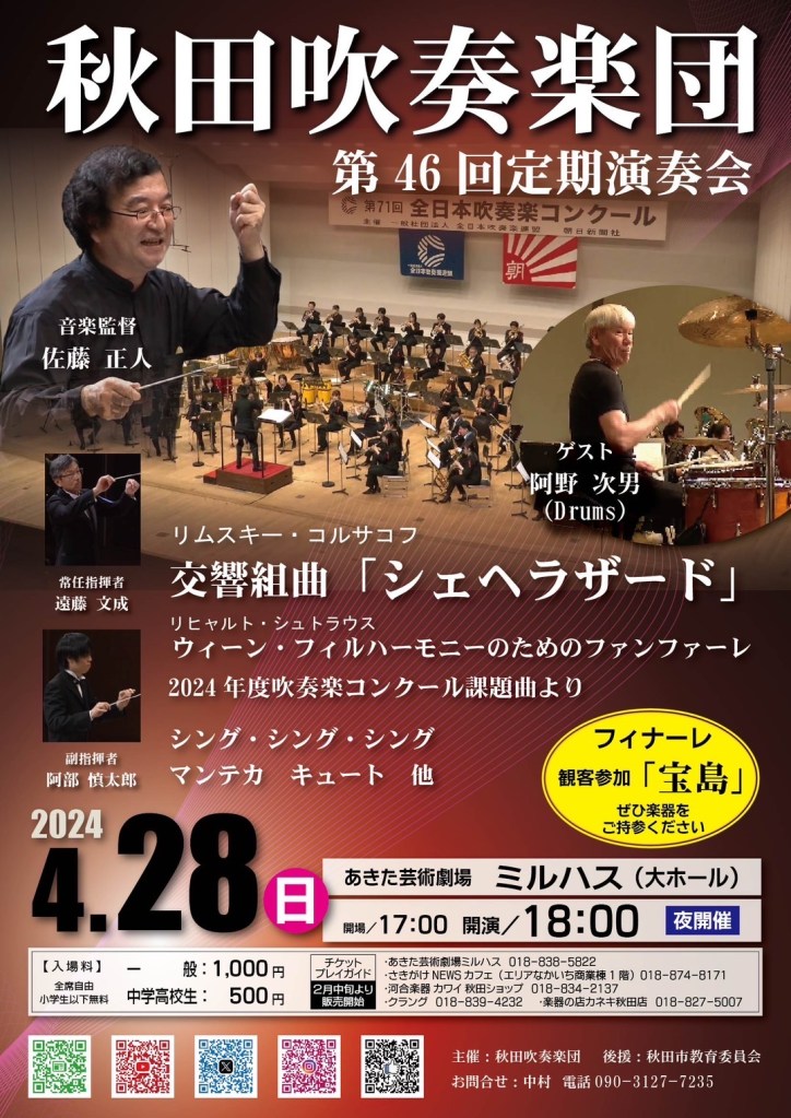 お問い合わせ 秋田吹奏楽団 中村(090-3127-7235)